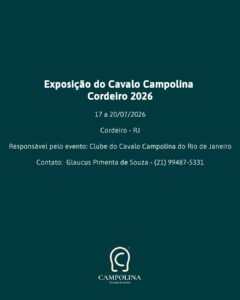 Responsável pelo evento: Clube do Cavalo Campolina do Rio de Janeiro