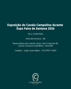 Responsável pelo evento: Assoc. dos Criad. do Cavalo Campolina da Bahia – ACCCBA