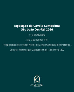 Responsável pelo evento: Núcleo do Cavalo Campolina de Tiradentes