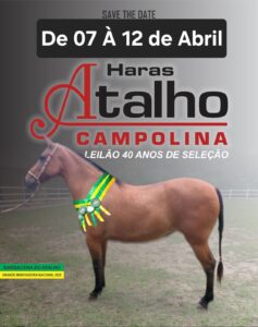 Home / Eventos / Agenda de Eventos / Leilão Haras AtalhoLeilão Haras Atalho Barbacena – MG 07 a 12/04/2026 Responsável pelo evento: Tunico Contato: (32) 98877-2148